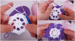 2-Try making the flower and doily motifs separately before sewing them together.