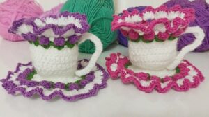Crocheting a tea cup and motif can be a charming project for beginners. Here’s a step-by-step guide to help you get started: