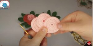 - Optionally, stuff the center of the rose with a bit of stuffing material before attaching the last petal.