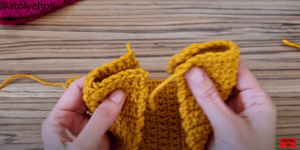 - Once you’ve reached the desired width, fasten off the yarn and weave in any loose ends using a tapestry needle.