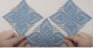 This “Pineapple” square motif can be used in various projects such as blankets, tablecloths, and other decorative items. The delicate lace pattern adds a touch of elegance to any creation.